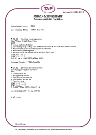 高壓用電設備原製造廠認可證書